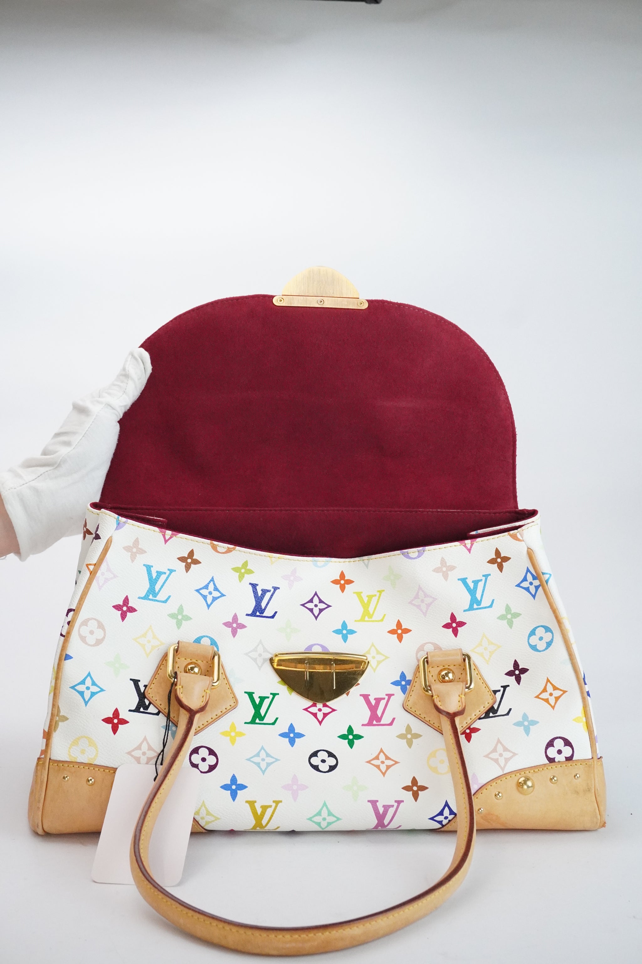 De Louis Vuitton Beverly tas in een speciale editie: de Takashi Murakami multicolor. De tas is in uitstekende staat! We komen weinig multicolor wit tegen met nauwelijks verkleuring, deze tas is nog heel mooi wit met de iconische multicolor bedrukking van de Japanse kunstenaar Takashi Murakami.