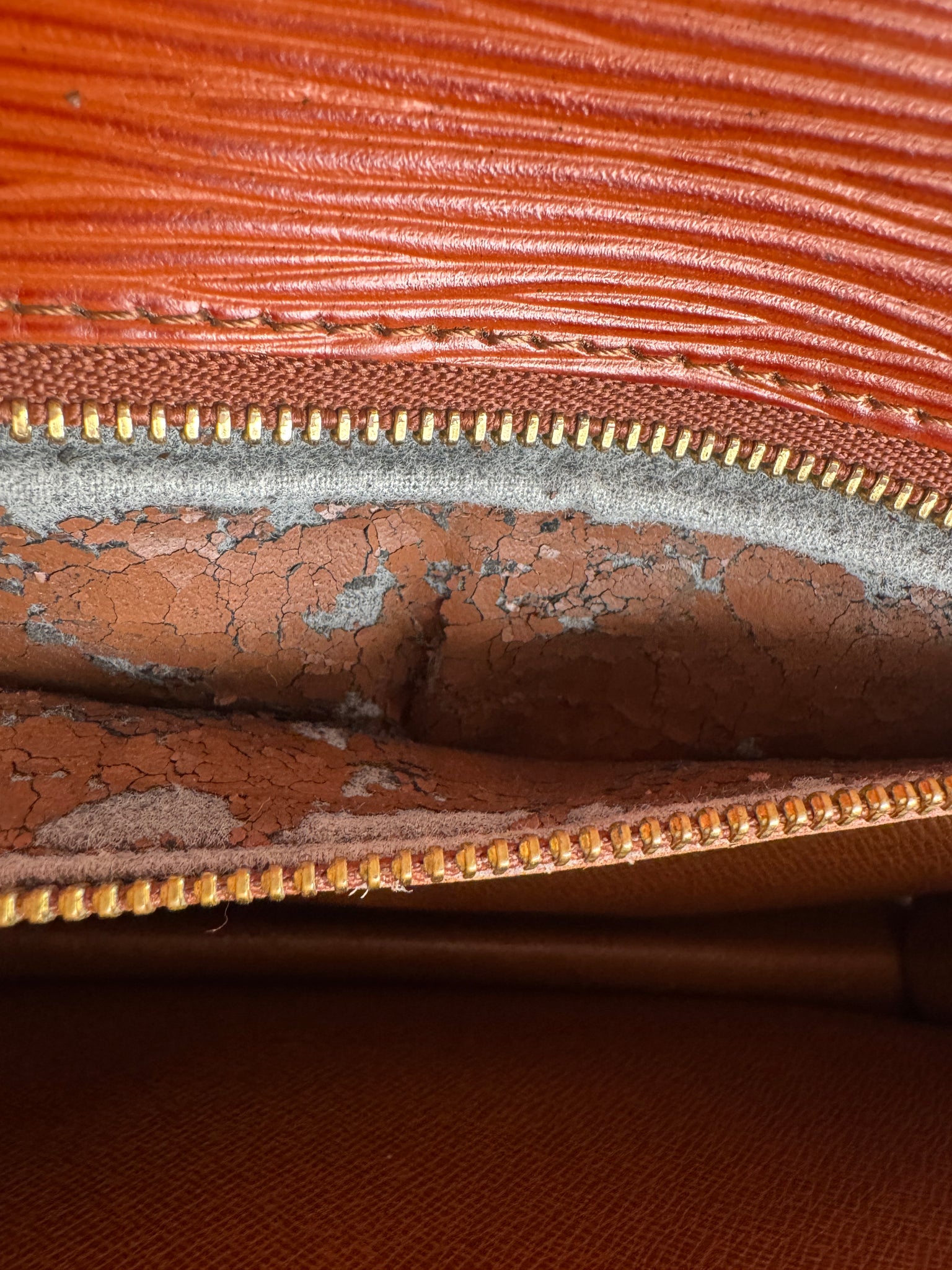 De Louis Vuitton Epi dragonne clutch in uitstekende staat.